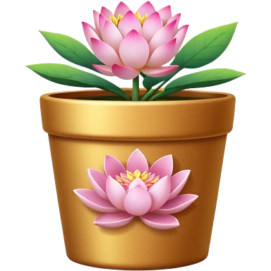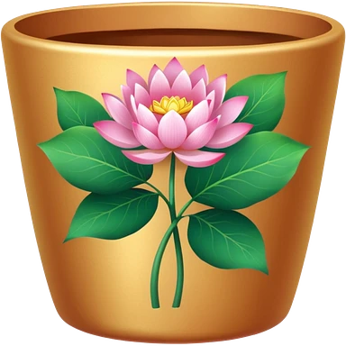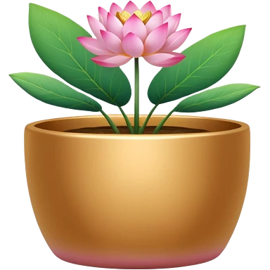 Gold-colored ceramic flower pot; it is shallow and cylindrical, and contains a lotus flower plant. emoji