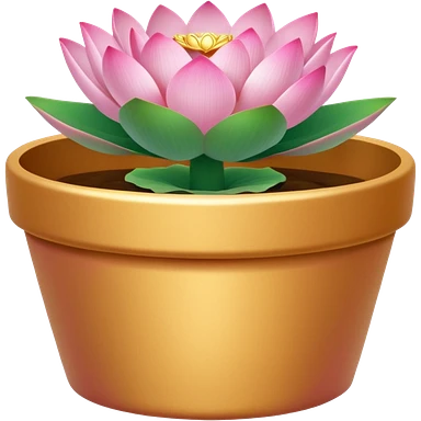 Short, cylindrical ceramic flower pot in pastel yellow, containing a lotus flower plant. emoji | AI Emoji Generator