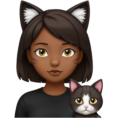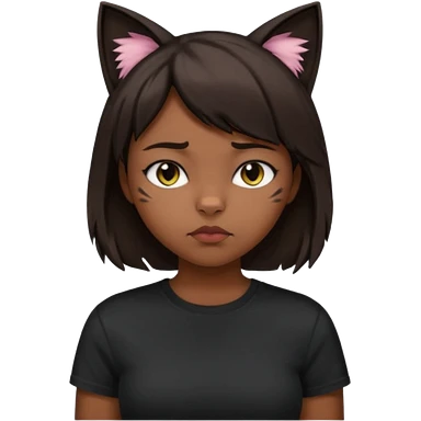 a girl with short dark brown hair with lots of dandruff , cat ears and a tail, with a black t-shirt on emoji