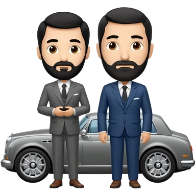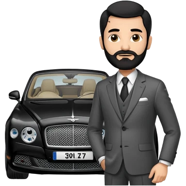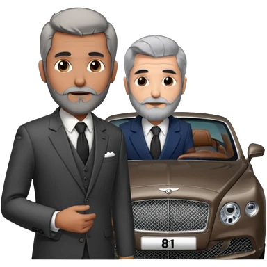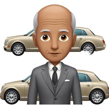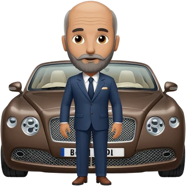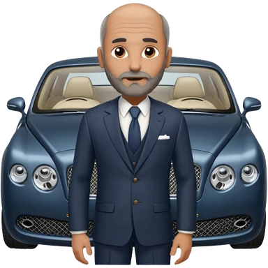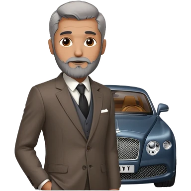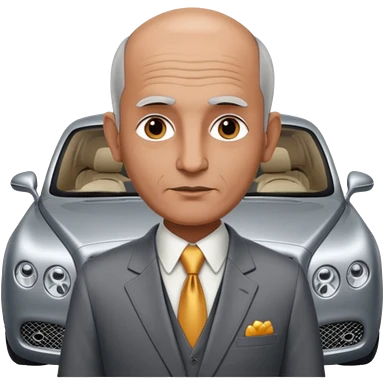 Balding graying indian guy in suit with a bentley emoji