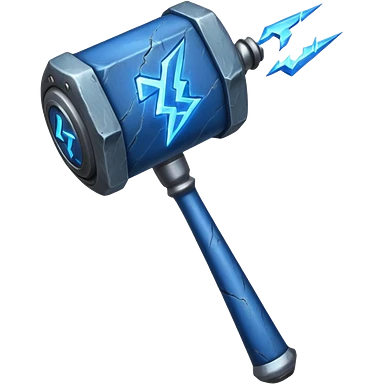 Short, heavy hammer with runes glowing blue, lightning crackling around it. emoji | AI Emoji Generator