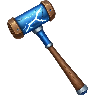 Short, heavy hammer with runes glowing blue, lightning crackling around it. emoji