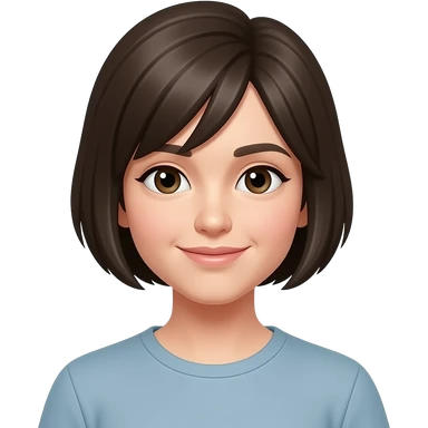 short black haired girl with flat bangs wearing glasses and wearing a white t-shirt emoji