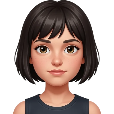 Brunette with darker hazel eyes shorter hair pretty emoji