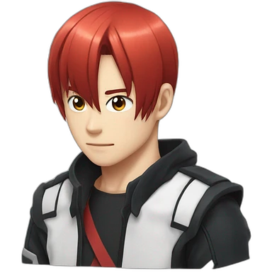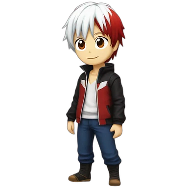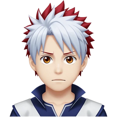 Shoto Todoroki face only, left side white hair, right side red hair, heterochromatic eyes, burn scar on left side of face, serious expression emoji | AI Emoji Generator
