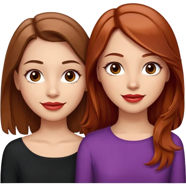 Shoulder lenght very dark brown wavy (wavy from the middle of the head, not from the scalp) hair, pale skin, brown eyes , big round nose, soft small lips, girl emoji with a white background and she's wearing a black shirt emoji | AI Emoji Generator