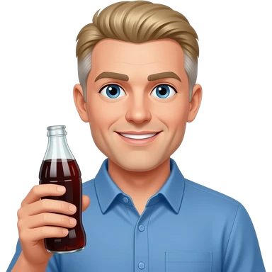 show me a white man in a blue button down shirt-- clean shaven -with blond salt and pepper hair holding a soda emoji