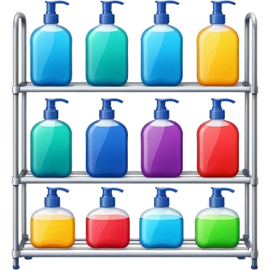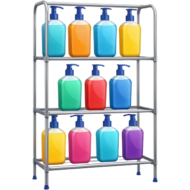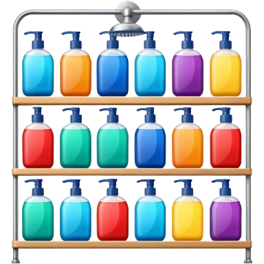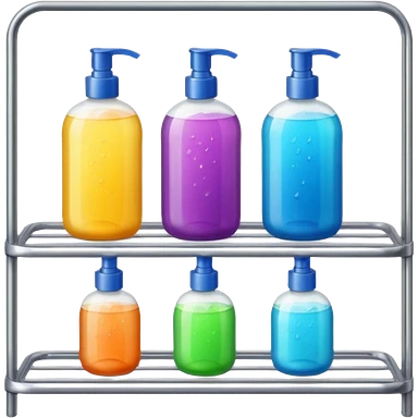 Shower with body wash, shampoo, and conditioner on racks emoji