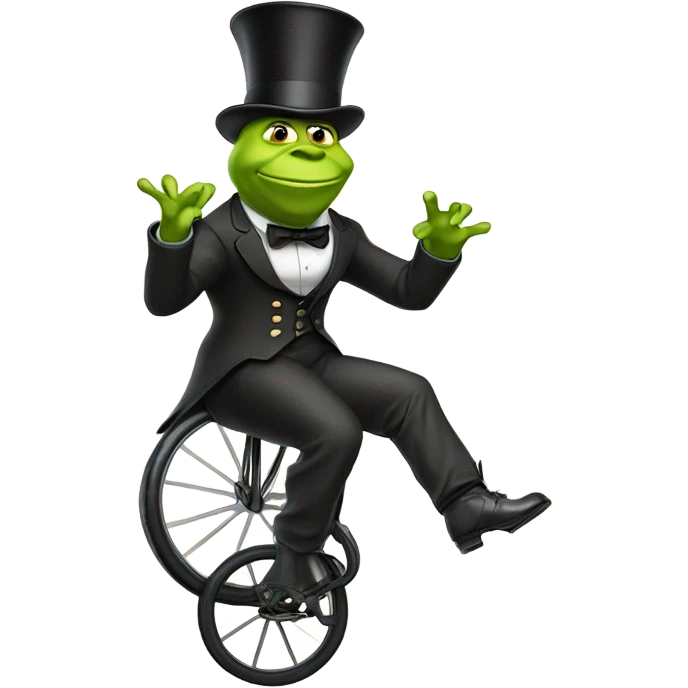 Shreck on a unicycle with a top hat emoji | AI Emoji Generator