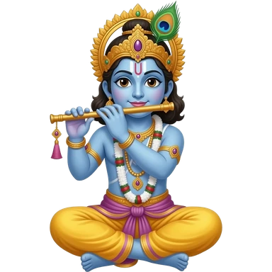 Sri Krishna cute face, wearing a throne and fixed a peacock feather on the throne and play a flute. emoji