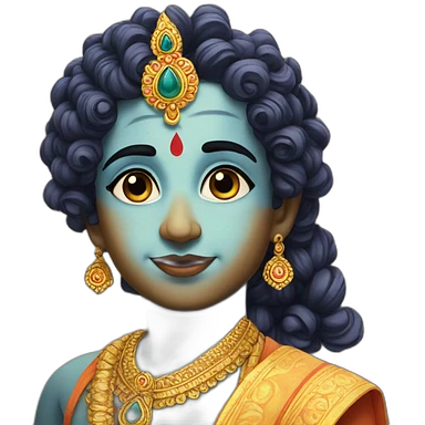 Radha and Krishna emoji, holding hands, Krishna with blue skin and flute, Radha in colorful saree emoji