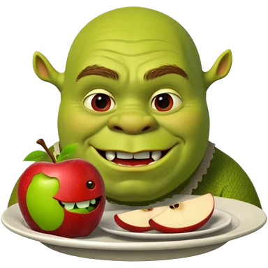 Shrek il a pas d'oreille juste deux tubes cylindriques verts, courts et épais, qui sortent horizontalement des côtés de la tête. Chaque oreille ressemble à une petite trompette inversée : t en une embouchure circulaire parfaitement ronde à l’extrémité. emoji