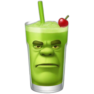 shrek-style cat drinking beer in a emoji-poop-like cup emoji