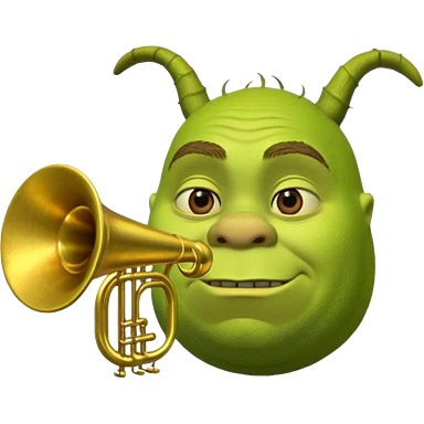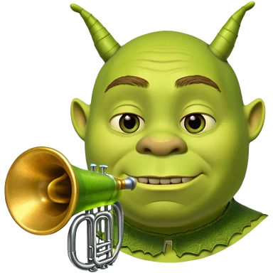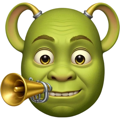 Shrek il a pas d'oreille juste deux tubes cylindriques verts, courts et épais, qui sortent horizontalement des côtés de la tête. Chaque oreille ressemble à une petite trompette inversée : t en une embouchure circulaire parfaitement ronde à l’extrémité. emoji