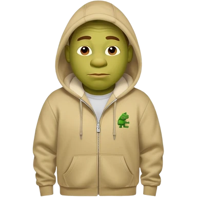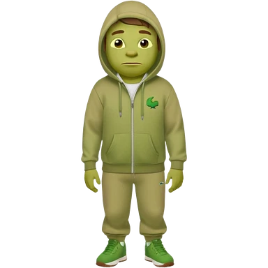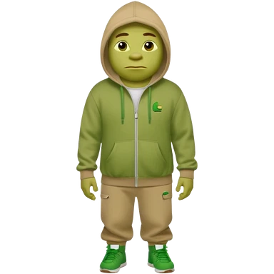 Shrek en tn avec une cagoule un jogging Lacoste avec un pull CP company emoji