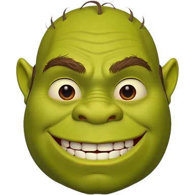 shrek sans cheveux et deux petites oreilles en trompettes une sur chaque cote de son crane emoji
