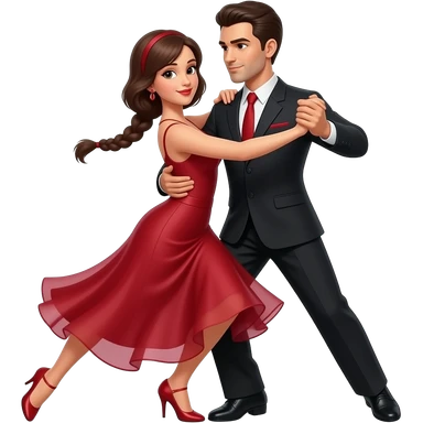 couple dancing tango conservative. White rafle dress and black tooawoman emoji