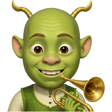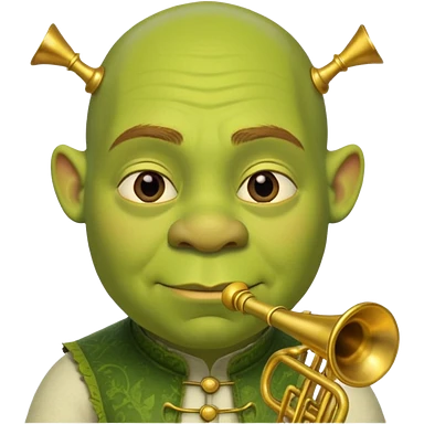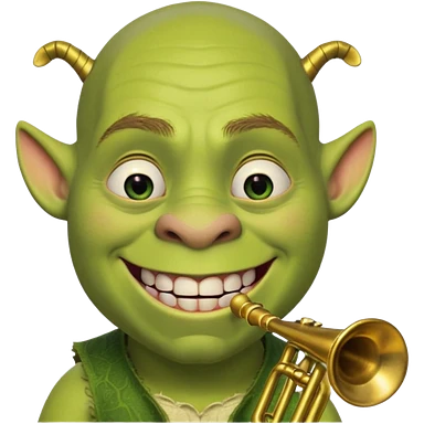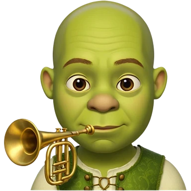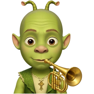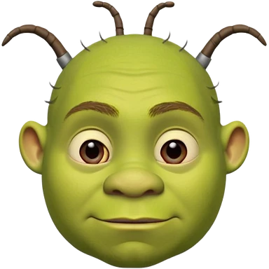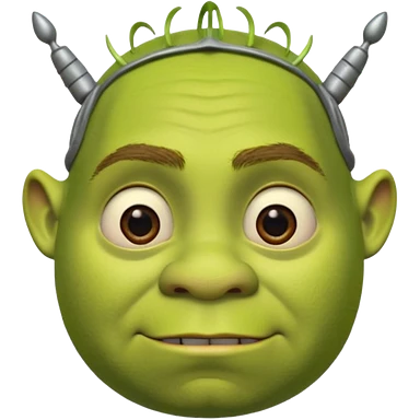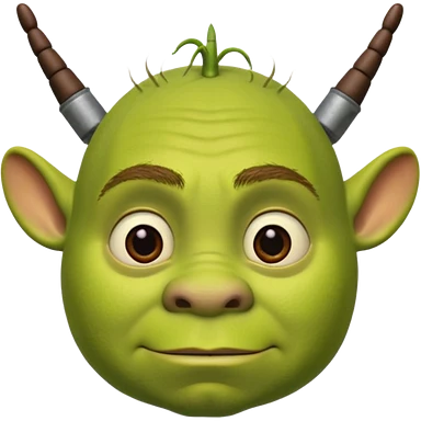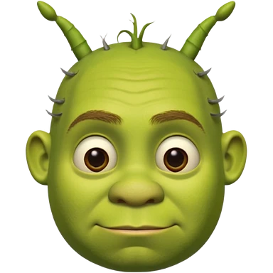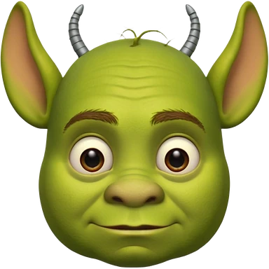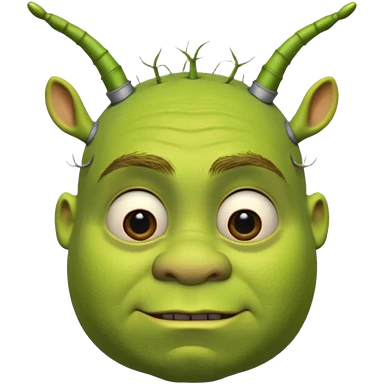 shrek sans cheveux et deux petites oreilles en forme de trompettes une sur chaque cote de son crane emoji | AI Emoji Generator