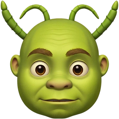 Shrek avec deux petites antennes-oreilles cylindriques plantées de chaque côté de la tête : elles sont courtes, épaisses, avec une ouverture ronde à l’extrémité. emoji