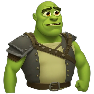 an emoji of famous dreamworks character, shrek, in a "let's fucking go" pose. mouth wide open yelling out of excitement. eye closed, exaggerated pose, fists clenched emoji