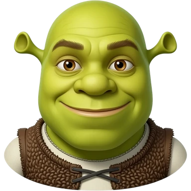 Shrek’s broad build and swampy texture—mixed with the tall, lanky proportions of the Cat in the Hat. He has small ogre ears poking through a slightly tattered red-and-white striped top hat. Hyper-realistic fur and skin textures, expressive CGI facial animation, comedy ogre cartoonish elasticity. emoji