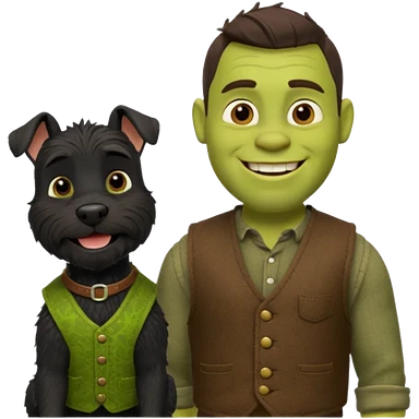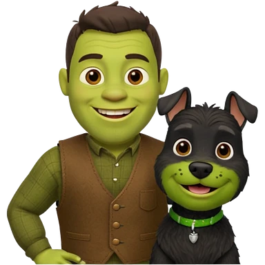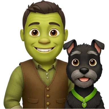 Shrek with a miniature black schnauzer emoji | AI Emoji Generator