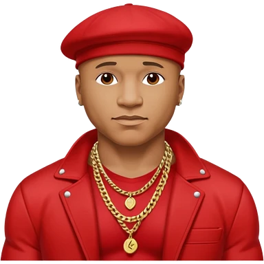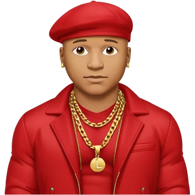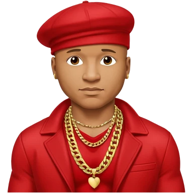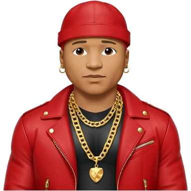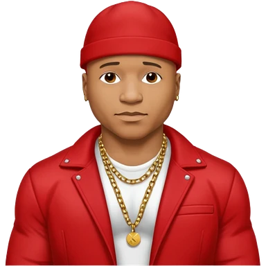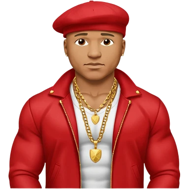 LL Cool J shirtless with necklace, red jacket emoji