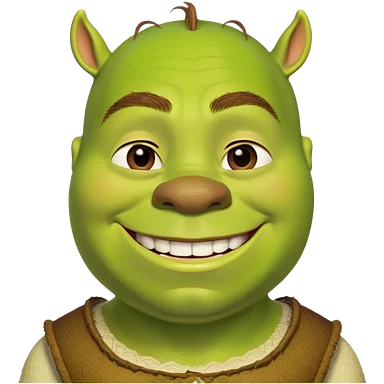 Shrek with a blue mohawk smiles a toothless smile emoji