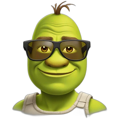 shrek very serious being a dj, with a cap and sunglasses with silver lenses emoji