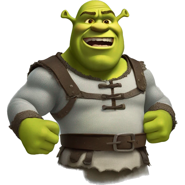 Shrek yelling at the clouds with his fist raised emoji | AI Emoji Generator