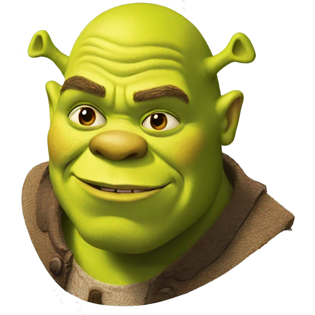 Shrek il a pas d'oreille juste deux tubes cylindriques verts, courts et épais, qui sortent horizontalement des côtés de la tête. Chaque oreille ressemble à une petite trompette inversée : t en une embouchure circulaire parfaitement ronde à l’extrémité. emoji