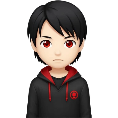 Create an emoji of a boy with long black hair and red eyes, in a chibi anime style. emoji