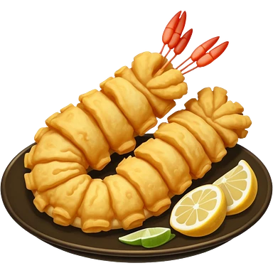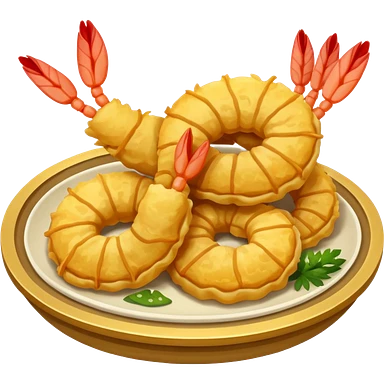 realistic tempura dish emoji, shrimp and vegetables, crispy golden coating, dynamic lighting emoji