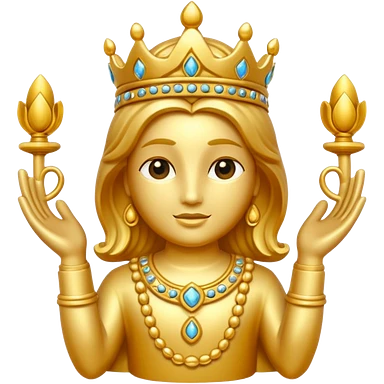 A cute and detailed emoji-style Lord Ganesha idol, with an elephant head, big ears, wearing a crown and ornaments, sitting on a lotus, holding a modak, vibrant colors, divine aura emoji
