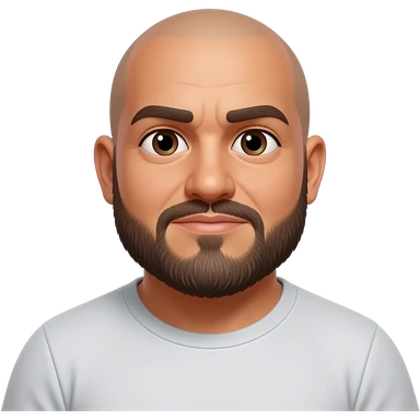 Shrugging fat African American bearded chunky bald guy with brown skin brown eyes emoji | AI Emoji Generator