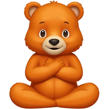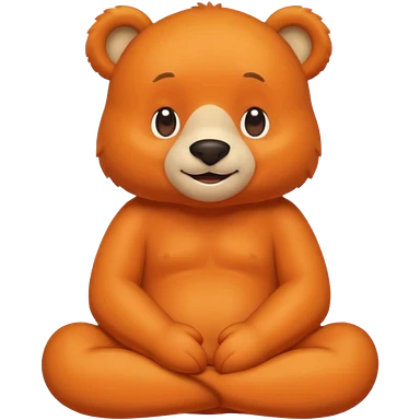 Create a orange friendly bear, make him look like from a kid cartoon and make him smile. Show his whole body. Make him look shy and cross his leg while he is standing emoji
