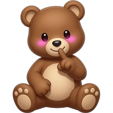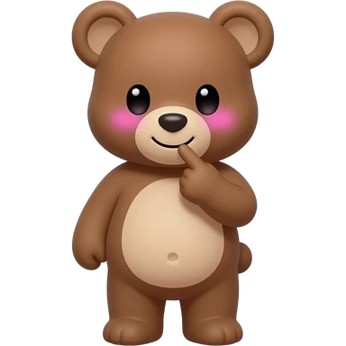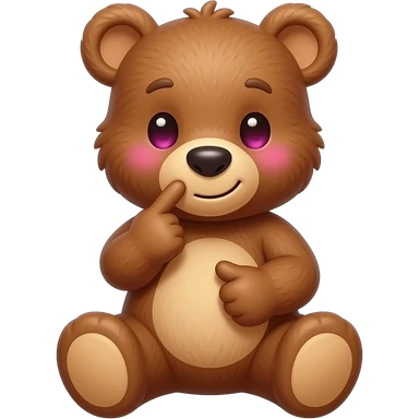 A brown teddy bear half body till stomach looking sideways as a male bear, he shy and looking down. He is also touching his index finger with each and pink glow under eyes just like an anime character. He is also slightly smiling. emoji