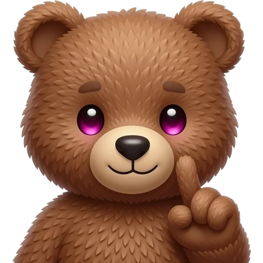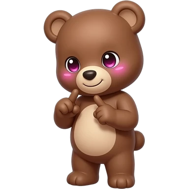 A brown teddy bear half body looking sideways as a male bear, he shy and looking down. He is also touching his index finger with each and pink glow under eyes just like an anime character. He is also slightly smiling. emoji