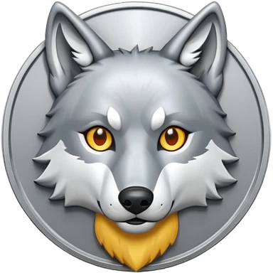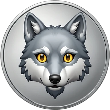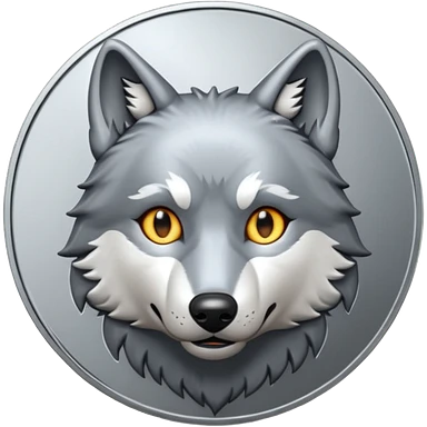 Silver coin with a wolf face as the center emoji