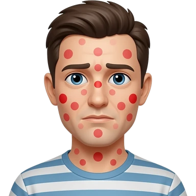 IOS style yellow face sick emoji having red dots in his skin emoji