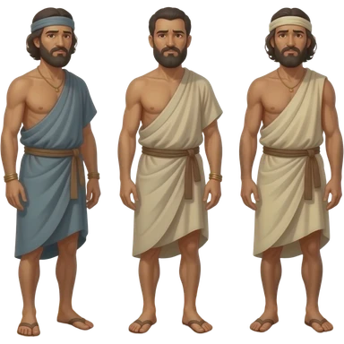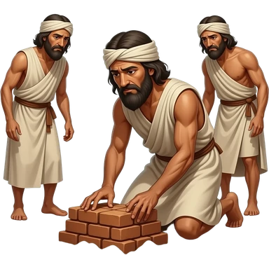 Hebrew slaves from biblical times wearing draped clothing skinny and sick under the hot sun creating bricks out of mud and straw emoji