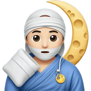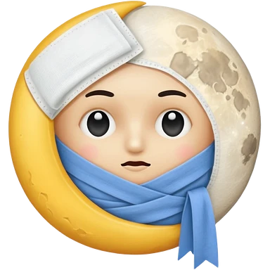 moon wrapped in bandage like “overworked” emoji