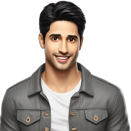 generate a pretty bratz siddharth malhotra, LEAN BUT MUSCULAR WEARING A black LEATHER JACKET emoji