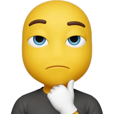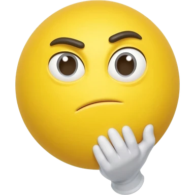 The emoji has a round yellow face with a slightly skeptical expression Its eyebrows are raised, and the eyes are looking sideways, which gives the feeling that it’s judging or thinking One white-gloved hand is placed under its chin, The mouth is slightly curved emoji