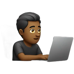 front view,white pretty female coder with apple laptop in front of her, very long straight brown hair, brown eyes, facing the right side looking at the laptop, yellow sweatshirt, transperant glasses emoji