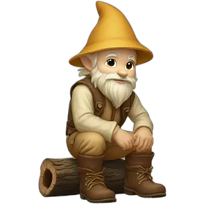 side view of gnome with light tan pants and light tan boots squatting in front of small brown log emoji | AI Emoji Generator