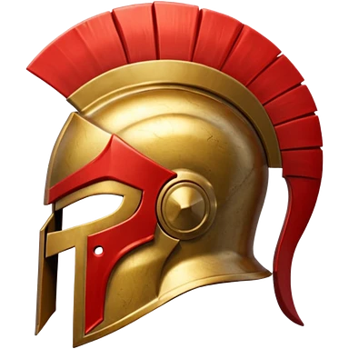 Side view of a gold Spartan helment with a red crest emoji