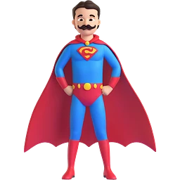 young teenage superhero sidekick with impressive curly mustache, smaller version of beard superhero costume emoji
