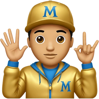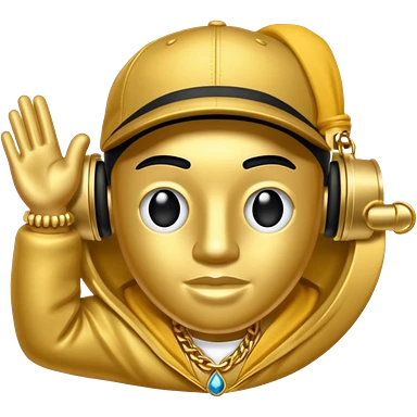 rapeur jul en emoji ios, blanc, rasé sur les cotés, cheveux au centre dressés au gel, signe J avec les mains, survet de l'om emoji