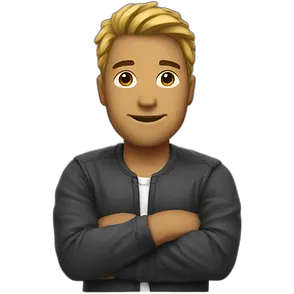 Un homme habillé en noir qui fait le signe 4 avec ça main emoji